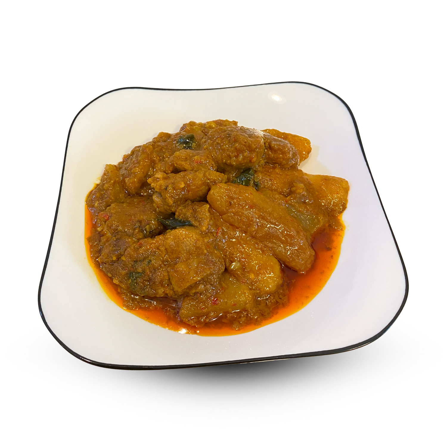 Pork, potatoes, curry seasoning (curry powder, chili paste, garlic, shallots, salt, sugar, cooking oil).